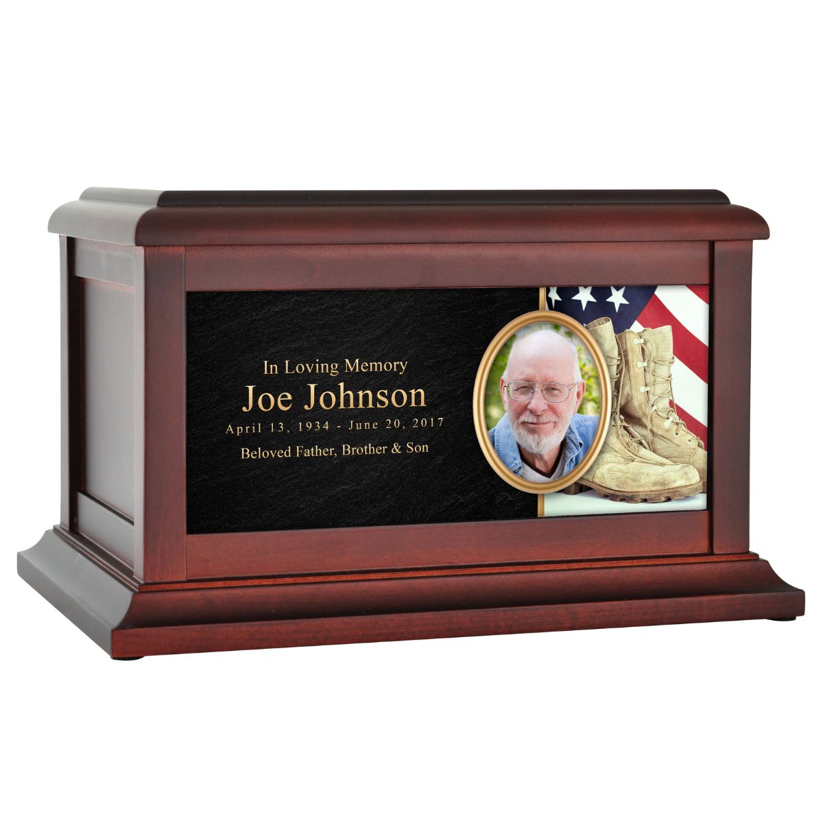 Honor a cherished life with the Old Combat Boots with American Flag Urn — a beautifully crafted cremation urn. Thoughtfully crafted to serve as a meaningful and lasting tribute to someone deeply loved.